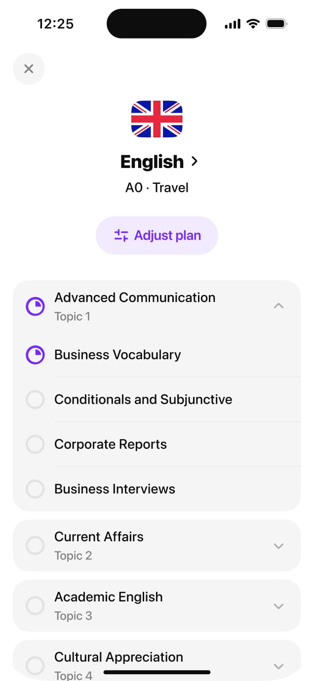 Speaking, reading, listening — we're taking teaching language seriouslyBuild a solid language foundation with not just speaking, but grammar, vocabulary, listening, reading, and more exercises — just like with a human tutor!