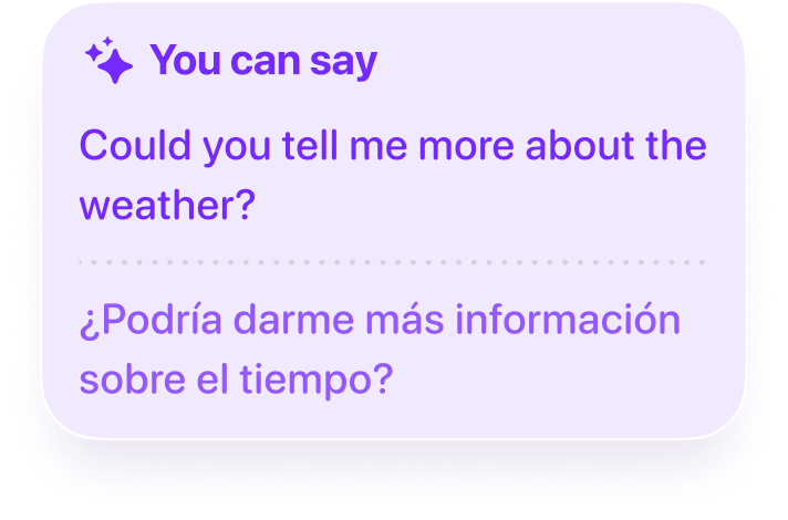 03 / 05Get helpful suggestionsSee natural phrases and smart prompts tailored to the moment, keeping conversations flowing with confidence